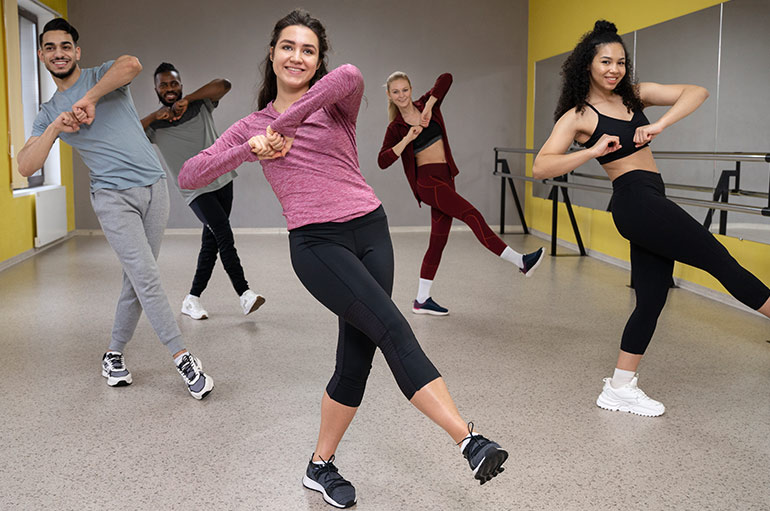 Zumba is a high-energy dance fitness program that combines Latin and international music with fun, easy-to-follow dance moves. It’s a full-body workout that blends cardio, muscle conditioning, balance, and flexibility. Zumba classes feel more like a dance party than a workout, making it a popular and enjoyable way to stay fit and boost your mood.
